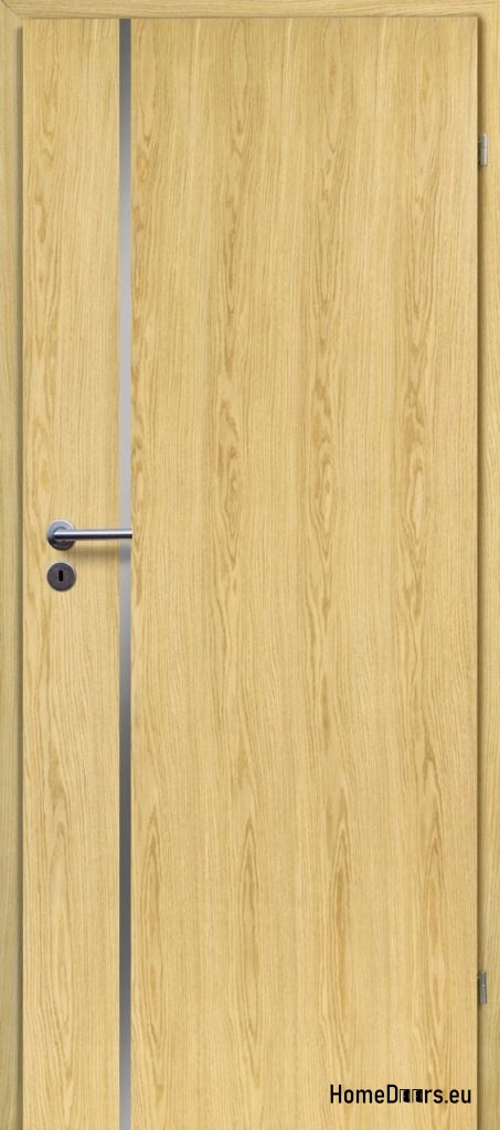 Drzwi o konstrukcji płytowej, oklejone naturalnym fornirem. Krawędzie drzwi zdobi naturalne drewno. Wypełnienie drzwi stanowi płyta wiórowa wielootworowa, wysoko prasowana. Drzwi są uszlachetnione podwójną warstwą oleju o podwyższonym parametrze odporności na ścieranie, przyjaznym dla zdrowia i środowiska.