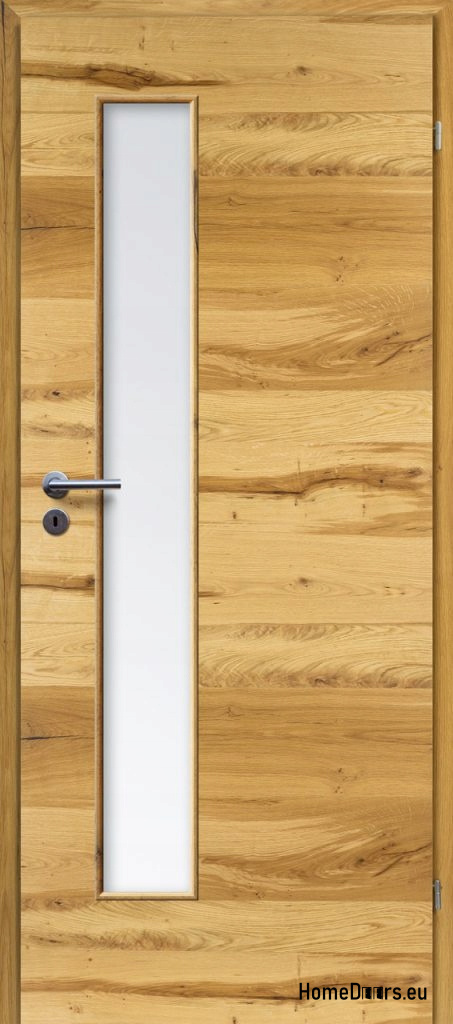KONSTRUKCJA SKRZYDŁA: Drzwi o konstrukcji płytowej, oklejone naturalnym fornirem. Krawędzie drzwi zdobi naturalne drewno. Wypełnienie drzwi stanowi płyta wiórowa wielootworowa, wysoko prasowana. Drzwi są uszlachetnione podwójną warstwą oleju o podwyższonym parametrze odporności na ścieranie, przyjaznym dla zdrowia i środowiska.