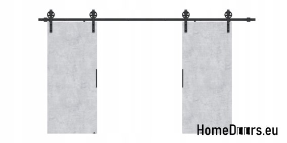 W zestawie otrzymujesz kompletne drzwi przesuwne 120 cm – skrzydło w kolorze beton szary + czarny system przesuwny LOFT 04 + uchwyt i prowadniki.