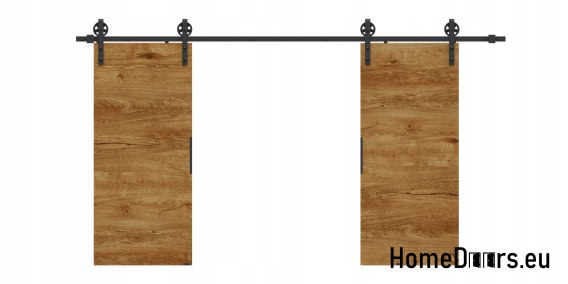 W zestawie otrzymujesz kompletne drzwi przesuwne 130 cm – skrzydło w kolorze Dębu Lefkas + czarny system przesuwny LOFT 04 + uchwyt i prowadniki.
