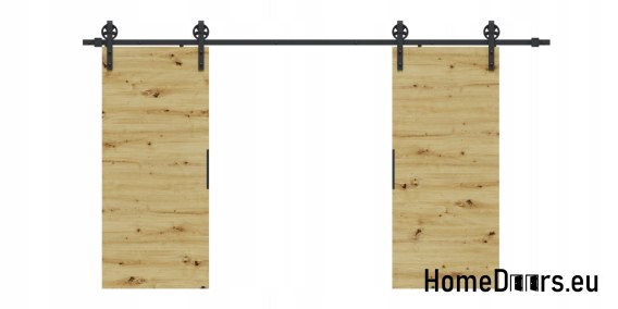 W zestawie otrzymujesz kompletne drzwi przesuwne 148 cm – skrzydło w kolorze Dębu Artisan + czarny system przesuwny LOFT 04 + uchwyt i prowadniki.