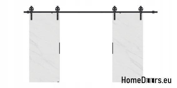 W zestawie otrzymujesz kompletne drzwi przesuwne 148 cm – skrzydło w kolorze Marmuru Białego + czarny system przesuwny LOFT 04 + uchwyt i prowadniki.