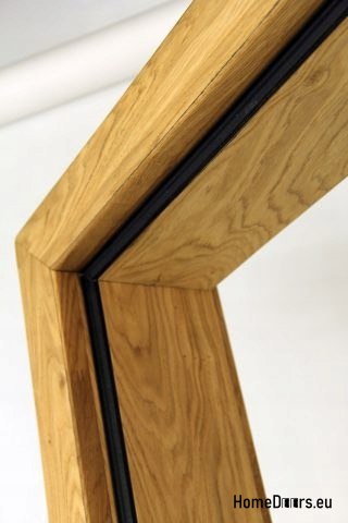 Ościeżnica wykonana z drewna klejonego blokowo, uszlachetnionego naturalnym fornirem.