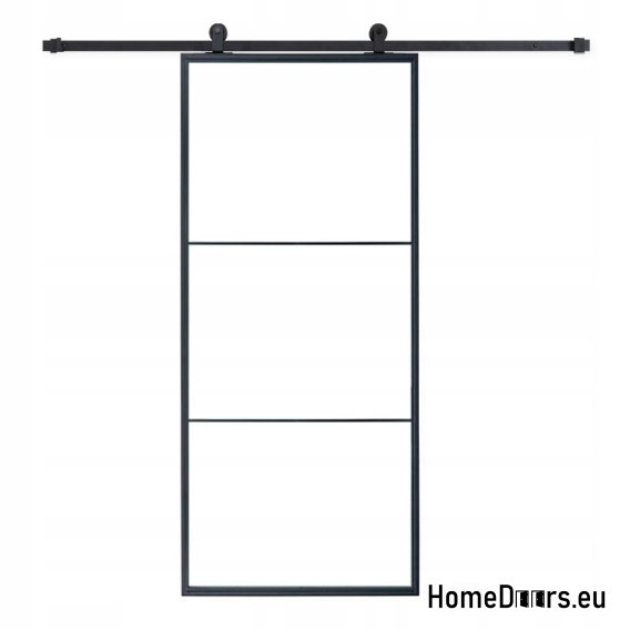 - Kurzbeschreibung: Stahlrahmen, Schiebe-Loft-Tür mit 3 Glasfeldern und einem modernen Satz von Schiebebeschlägen